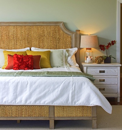 A beach bedroom island style, completed with a fresh cut Palm Leaf. Via Coastal Living.